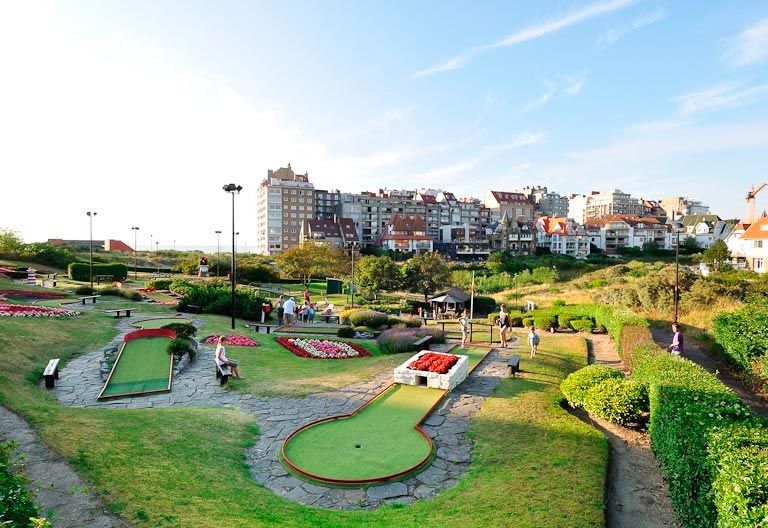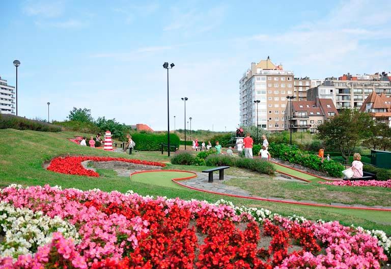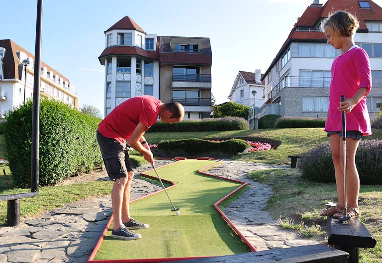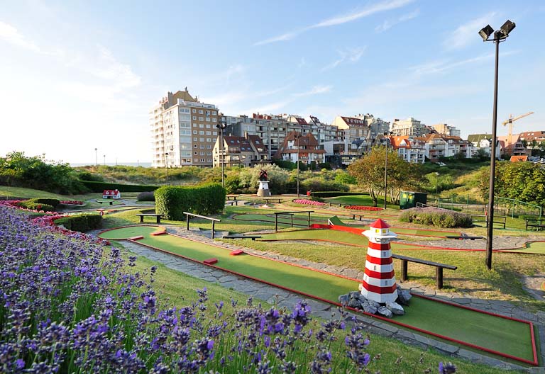 Tijdens het minigolfen kunt u genieten van onze unieke locatie, bekend om zijn oase van groen en bloemen. Gelegen op een steenworp van het strand, ideaal te combineren met een bezoekje aan het Zwin.